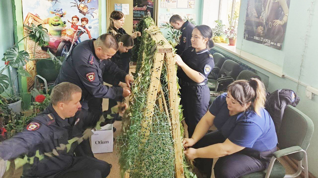 Полицейские начали плести многометровую маскировочную сеть. Об этом сообщили в ТГ-канале «Полиция Забайкалья».