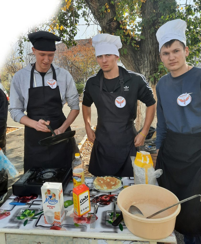 Студенты-волонтёры, будущие медики, педагоги и повара организовали выпечку блинов и плетение сетей. Коллективы Подойницынской и Ундинской школ, ТОС «Станица» (Новотроицк), ТОС «Искра» (с. Колобово) порадовали покупателей молочной продукцией, салом, травяными чаями, овощной консервацией. Коллектив центра «Золотинка» предложил покупателям свежий хрустящий хлеб.