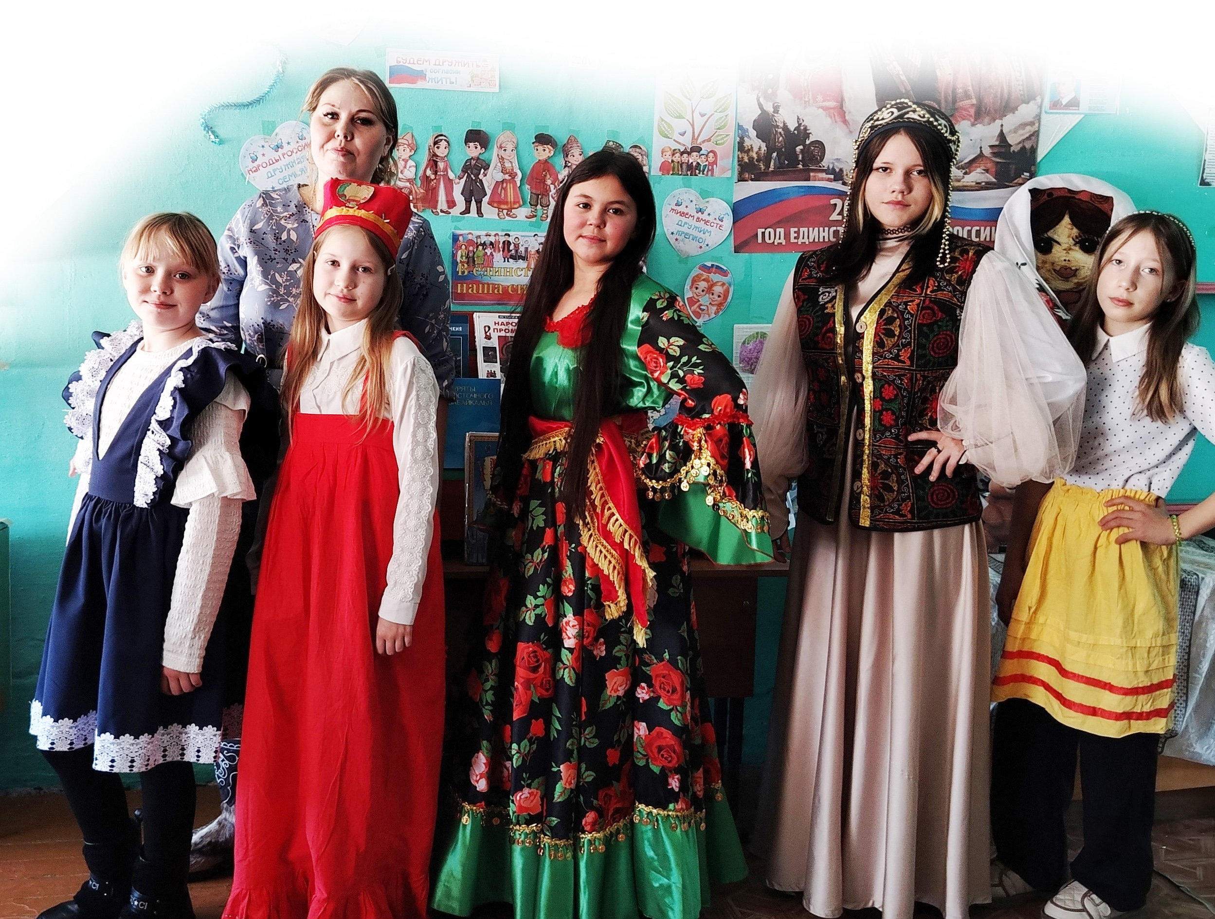 К мероприятию была оформлена тематическая выставка «В единстве народов – сила России», на которой представлены народы разной национальности, их жизнь и быт, в том числе и карта Забайкальского края, вся символика нашей большой и дружной страны.