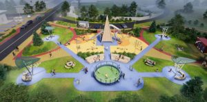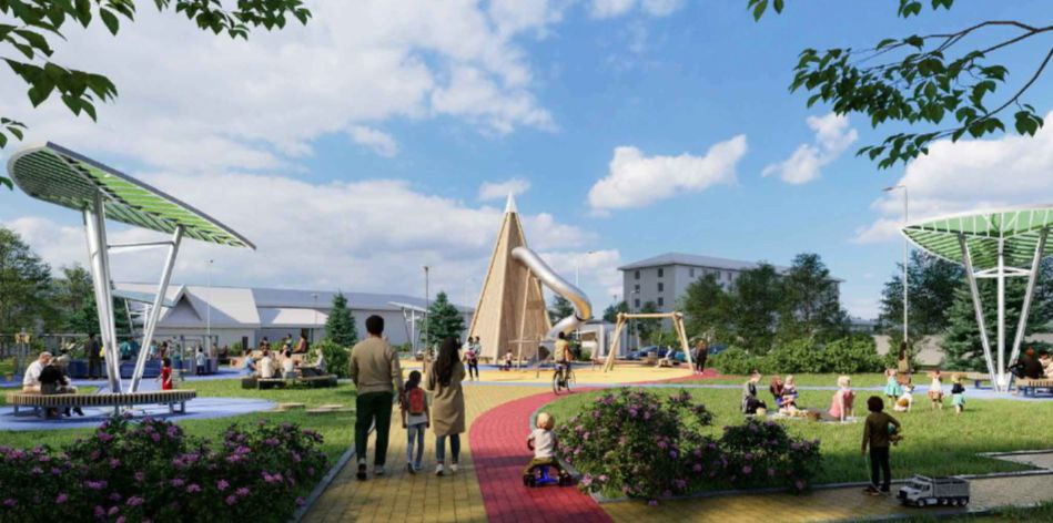 В новом парке разместят малую архитектурную форму «Золотой самородок», горки, качели, навесы, карусели, тренажёры, круглые скамейки, оборудуют дорожки для велосипедов и газоны для пикников, сделают освещение. Здесь появится детский городок «Самородок» с горками и скалодромом, миниамфитеатром для зрителей и многими другими элементами.