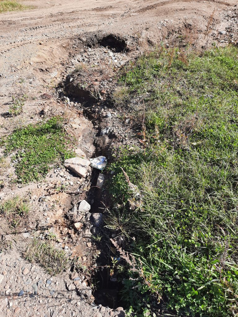 В редакцию обратились жители Новотроицка с улиц Подгорная, Гоголя, Пролетарской с проблемой – размытие грунтовой дороги после летних ливней, которая ведёт к магазину «Алёнка» (близлежащий участок, на котором раньше была расположена сберкасса).