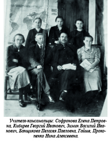 Желающих учиться было много. Обучали неграмотных молодые педагоги-комсомольцы: Евгения Ивановна Покровская, Агния Яковлевна Торохова, Анна Ивановна и Георгий Иванович Кутузовы. С домохозяйками занимались комсомольцы, у которых было образование 4 класса начальной школы. При свете керосиновых ламп, а порой и берёзовой лучины, взрослые ученики выводили первые в своей жизни слова: «Ленин, свобода, мы не рабы».