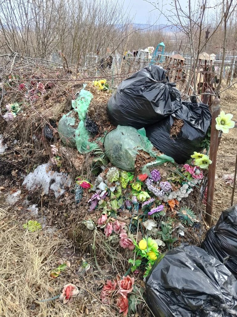 Некоторые граждане мусор с могил родных переносят к другим, чаще заброшенным, тем самым создают несанкционированные свалки. На замечания многие реагируют так: «А куда его? Мы давно сюда бросаем». Выбрасывают поклажу, не донеся до контейнера несколько метров. Пора менять ситуацию, сложившуюся на городском кладбище. Ведь если никто ничего не делает, значит всех всё устраивает.