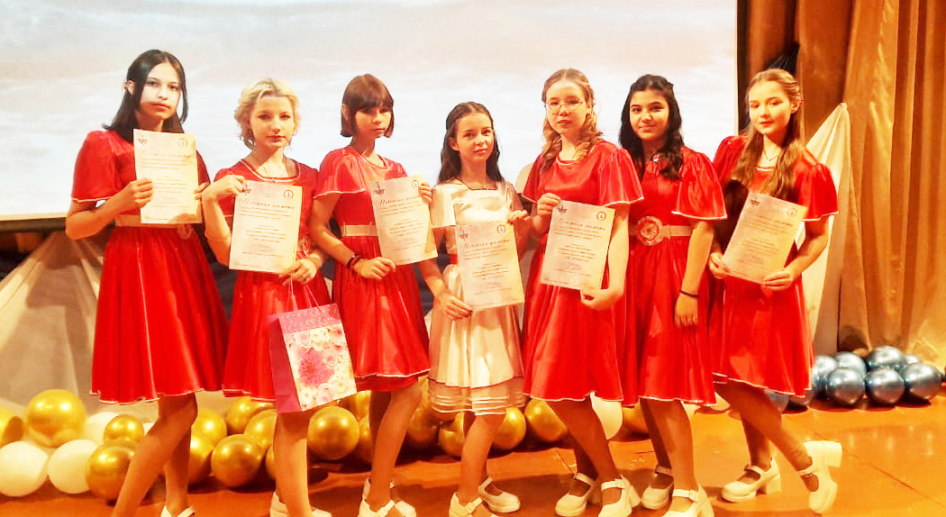 Волкова Эльмира, Ивачёва Алина, Чуйкова Кристина, Бакуменко Ольга, Черепанова Елена, Оганесян София, Ветрова Дарья (слева направо)