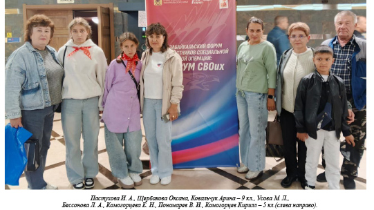 На дискуссионной площадке «Уроки с передовой (или СВОи учителя)», организованной министерством образования Забайкальского края, педагоги нашей школы вместе с детьми участников СВО с огромным интересом слушали рассказы учителей-героев, которые участвовали в боевых действиях и в настоящее время работают в школах края.